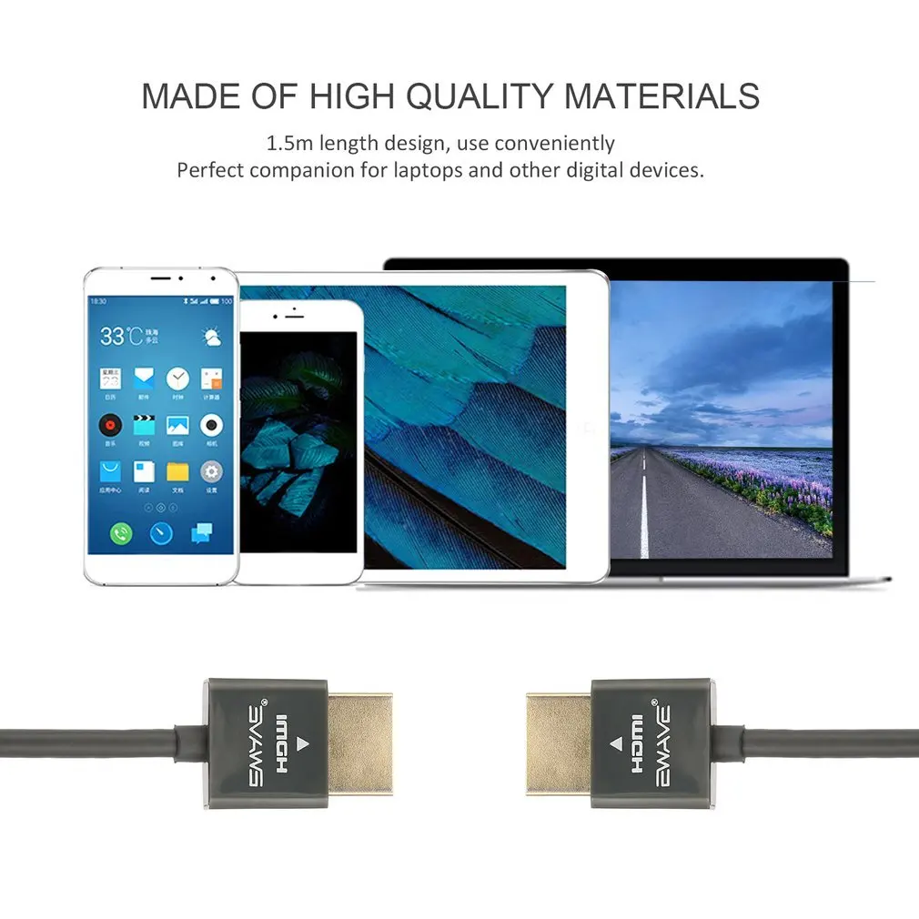 HDMI Cable Super Ultra Slim 10.2Gbps Bandwidth 340MHZ for New Flat 4K and 3D TV Digital Audio Video
